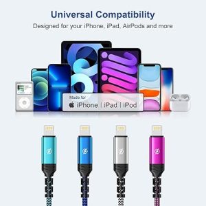 - ✔ 【Velocidad de carga y sincronización de datos superiores】Este cable cargador para iPhone puede cargar hasta 2,4 A y alcanzar una transferencia de datos de 480 Mbps. Al mismo tiempo, benefíciese del blindaje múltiple de alta calidad y del cable de cobre puro. También evita el sobrecalentamiento y la sobrecarga.