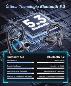 • ✔ 𝐍𝐮𝐞𝐯𝐚 𝐓𝐞𝐜𝐧𝐨𝐥𝐨𝐠í𝐚 𝐁𝐥𝐮𝐞𝐭𝐨𝐨𝐭𝐡 𝟓.𝟑: Los auriculares Bluetooth están equipados con un chip Bluetooth 5.3, micrófono CVC 8.0 de alta definición incorporado, el rango de transmisión Bluetooth puede alcanzar los 10 metros de distancia. Estos auriculares inalámbricos están equipados con tecnología avanzada de cancelación de ruido de micrófono. Los auriculares Bluetooth le permiten experimentar una velocidad de conexión más rápida, música más clara y llamadas más fluidas