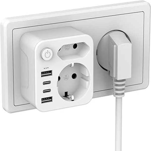 - ✔ Adaptador de enchufe 6 en 1: el enchufe con conector USB es adecuado para cualquier enchufe de contacto de protección comercial alemán, el adaptador de enchufe es ampliable a 1 enchufe Schuko, 1 enchufe europeo, 2 enchufes USB A, 2 enchufes tipo C. Puede cargar 6 dispositivos al mismo tiempo. Los puertos USB pueden cargar hasta 3,4 A. Es perfecto para cargar productos eléctricos como teléfono móvil, tableta, la potencia máxima es de 3680 W, batería externa, etc. y adecuado para algunos dispositivos